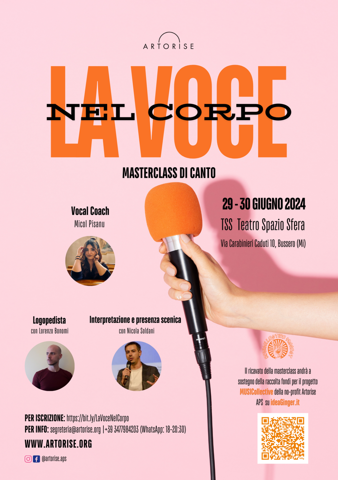 Il ricavato dalla Masterclass “La voce nel corpo” verrà devoluto interamente alla raccolta fondi a sostegno del progetto.